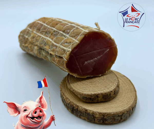 Savourez notre filet porc séché français artisanal ! Viande de porc 100% française, séchage lent pour un goût authentique. Un délice pour vos apéritifs ! minimum 220 gr.